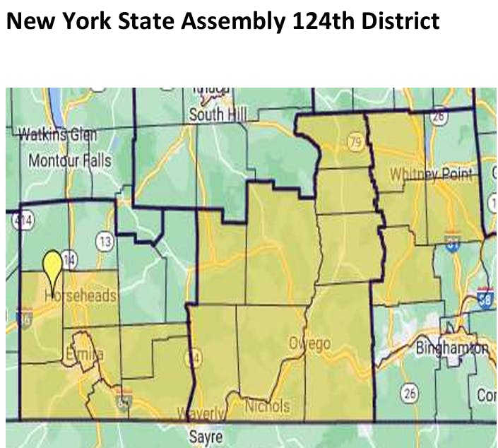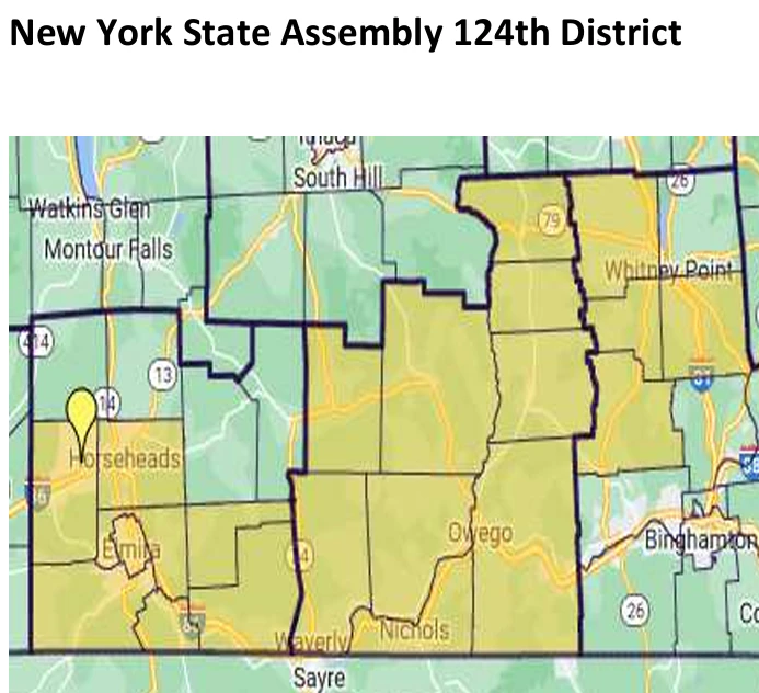 The New York State Assembly Member represents the 124th District serves Elmira, Chemung County, Tioga County, and part of Broome County. The Assembly Member is responsible for shaping state laws, advocating for district needs, and assisting residents with state-related issues.